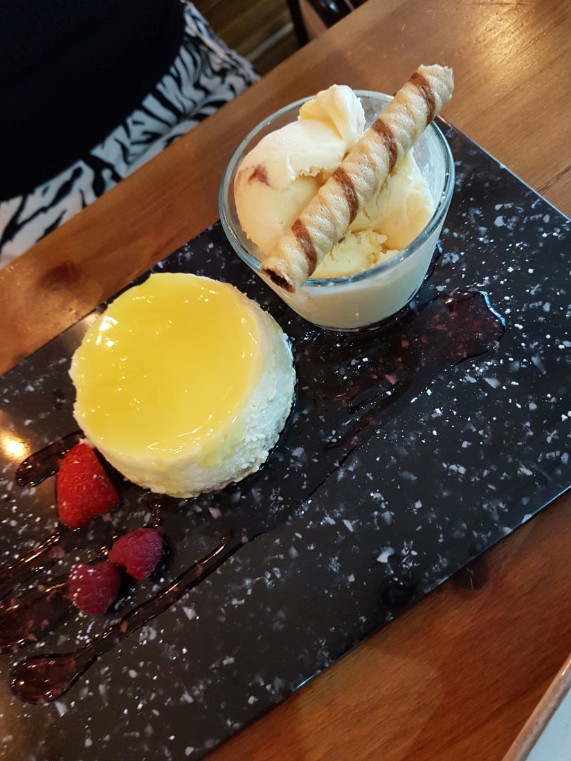 The belt buckle was bulging by this time but couldn’t resist one of the delightful desserts so opted for the light and zingy lemon cheesecake served with ice cream.