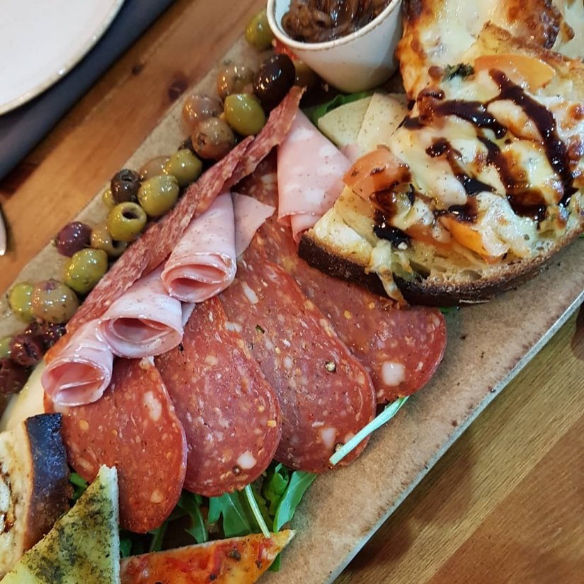 A generous portion of cured meats, Italian cheeses, bruschetta, olives and pizza bread served on a bed of rocket and sweet cherry tomatoes certainly got the taste buds tingling.